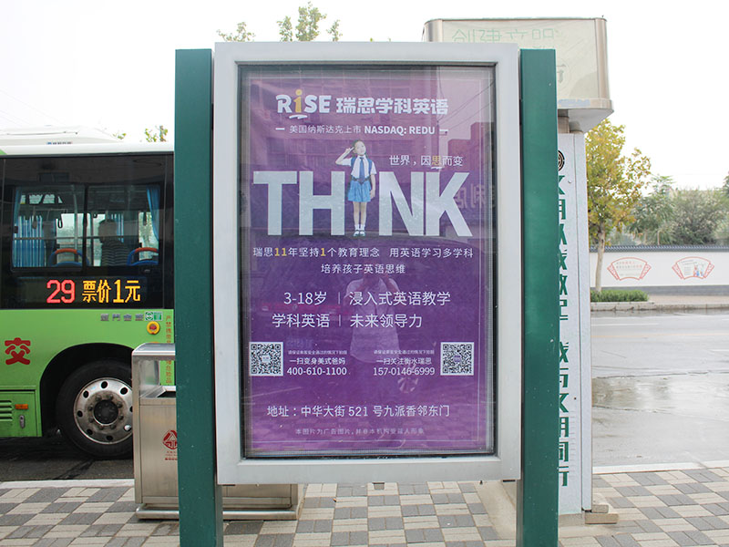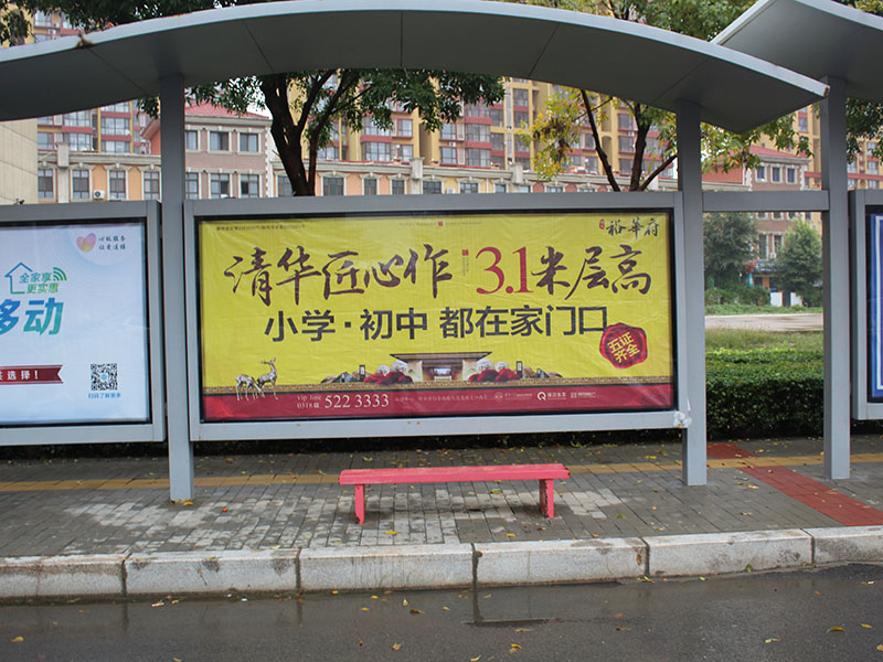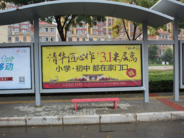 公交候車亭是鋼鐵噴塑結(jié)構(gòu),外觀線條流暢,造型現(xiàn)代,光亮潔凈,寬大玻璃,每個燈箱內(nèi)裝有LED照明燈帶,夜晚畫面在燈光襯托下非常醒目。畫面距地面0.6米,且沒有遮擋物,為人體視覺*佳高度,畫面尺寸3.5*1.5米,且廣告畫面為正反兩面發(fā)布,有效廣告面積可達(dá)10平米以上,廣告效果極佳。無論是白天還是夜晚,候車亭燈箱廣告都會給人以強(qiáng)烈的視覺沖擊感。